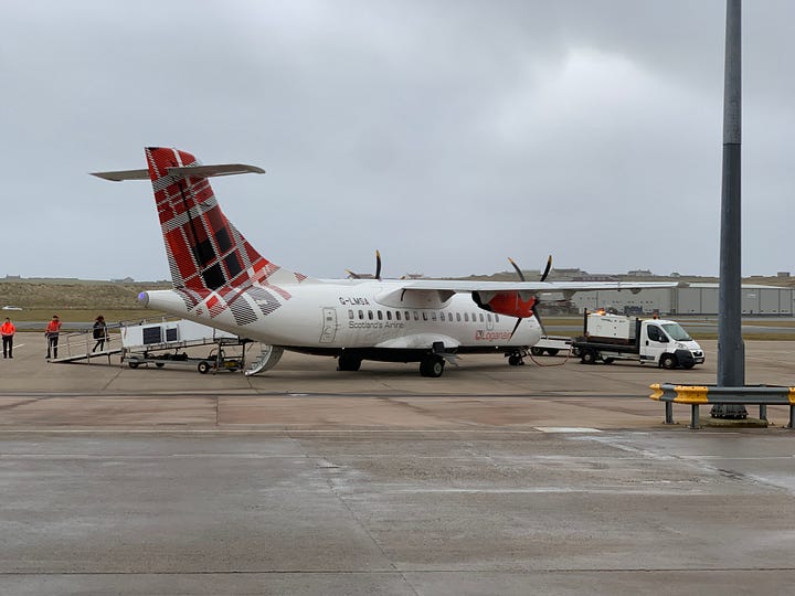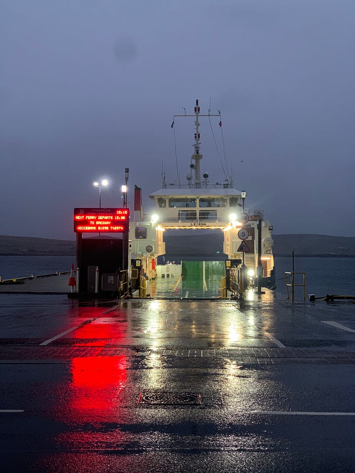 Horizontal rain, 6 hours of dusk in lieu of daylight, not a single tree in sight and everything, from the stone houses to the ground, dull in a muddy brown: December in Shetland is not for the faint hearted. Neither is our hotel. Having missed the previous night’s flight from Edinburgh to Sumburgh Airfield (thanks BA!) we arrive a morning late at this 80s brick fort, directly facing the metal monstrosity that is the island’s ferry port. The lights are on but there is no one on reception. A typed A4 instructs us to dial an in-house number and let it ring a very specific 13 times. Someone appears, hands over keys, waves us off in the general direction of our rooms on the third floor. The lift is out. We pass a bizarre nativity scene comprising of inflatable snowpeople, outdated shop mannequins, a multi-racial duo of baby dolls holding cuddly penguins, all accompanied by a screeching cacophony of music box Christmas songs blaring from decorative plastic oldy-worldly lanterns. The corridor is a drab burgundy on the walls, with faux wood panelling falling off in places, a beige tartan carpet and a side table with a bowl of dusty, depleted potpourri. I am sleeping in a pretend four poster bed, accompanied by chipped Regency-inspired furniture and peeling wallpaper. The hotel bar is shuttered, the breakfast mushrooms are shrivelled with age, swimming in oil on my plate. The around-the-clock hallway Christmas music is relentless. We expect Jack Torrance roaming the empty hallways with a certain tool. If this Shining-evoking hotel doesn’t get us, cabin fever will.